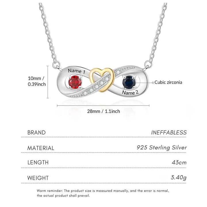 Sterling Silver Personalised Infinity Heart Birthstone Necklace with Engraved Names